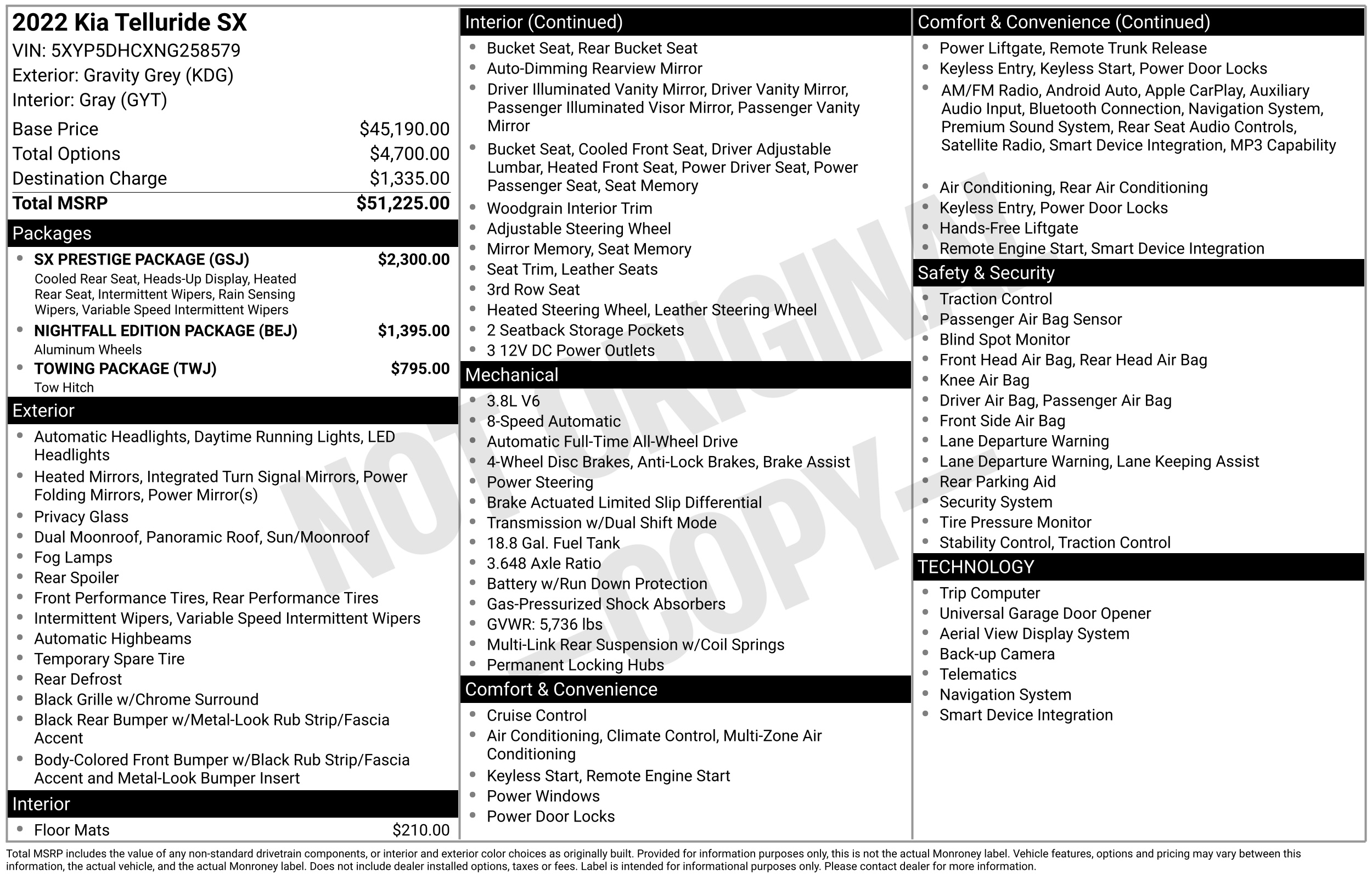 • VIN # 5XYP5DHCXNG258579